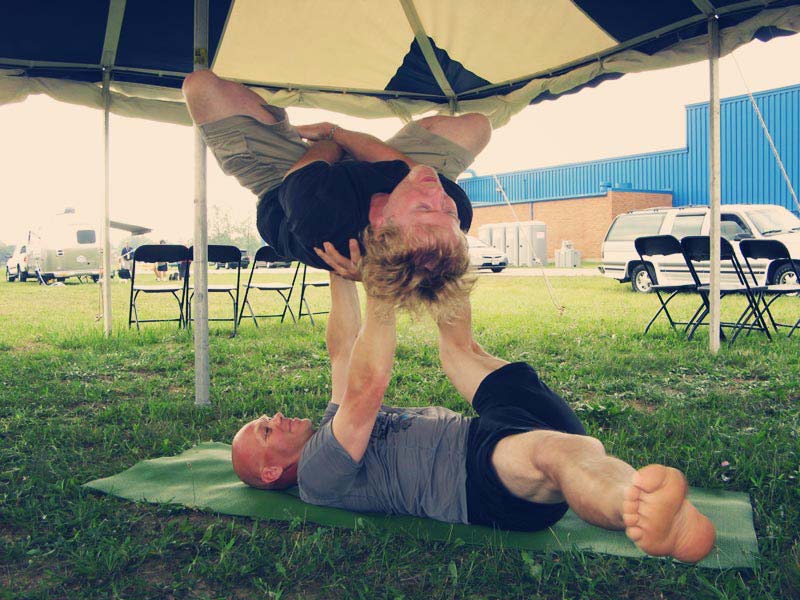 One-on-one or group private yogaFLIGHT sessions can be very serious and a whole lot of fun :).